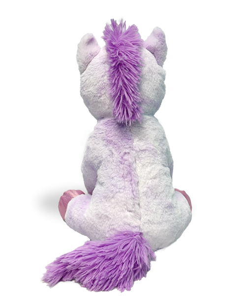 Welcoming Amethyst, your new unicorn bestie. She has ultra soft purple fur like her namesake. Amethyst has a sparkling pink horn and with matching hooves.  While her friend Opal likes to go on adventures, Amethyst prefers to read about them in books. She enjoys peaceful days reading under a tree or having a relaxing picnic.
