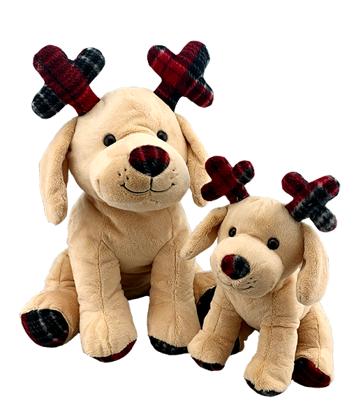 Dickens is your festive holiday companion! This delightful puppy with plaid accents, a sweet smile, and cute plaid antlers is ready to make you smile!