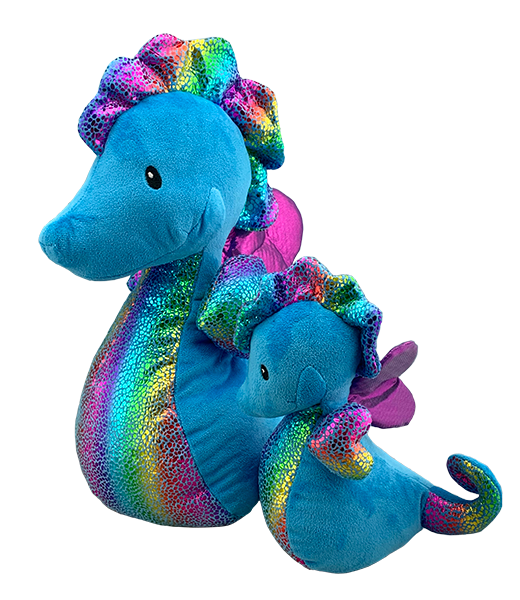 Introducing Shimmer the Seahorse! This dazzling beauty shines bright with glittery rainbow accents, sparking joy & adding a splash of magic to playtime!