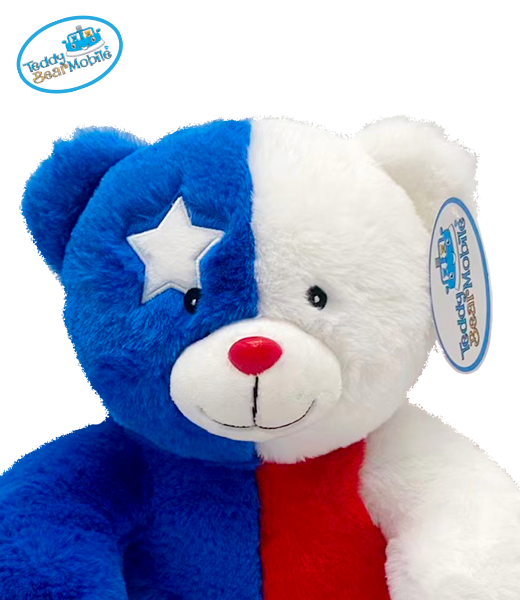 Exclusive Teddy Bear Mobile Design! The super soft Patriot Bear sports the brilliant Red White and Blue, and TBM logo and flag embroidery.