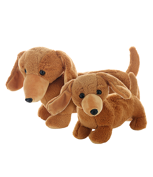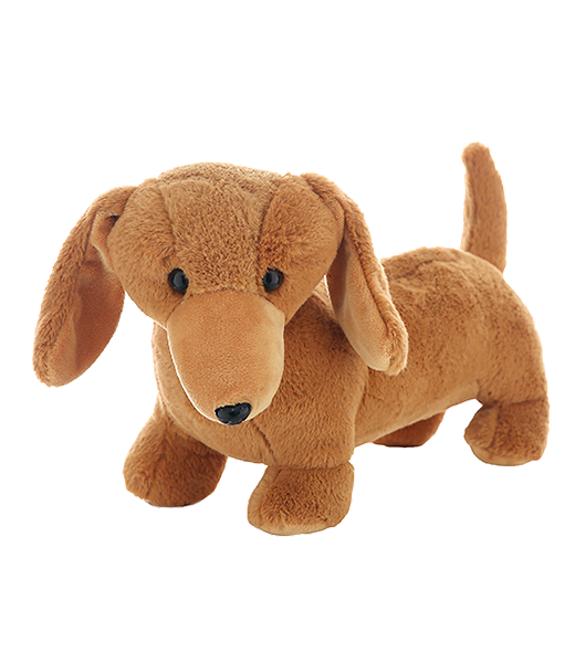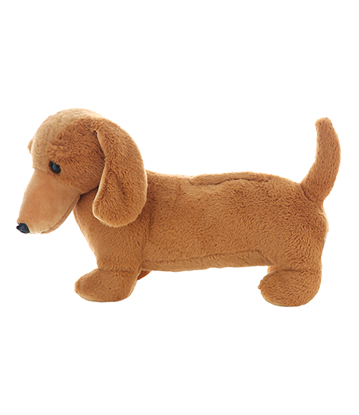 This cute little fellow is super soft and will win over your heart with one look at his cute little face and stubby little legs! Weiner has plastic eyes.